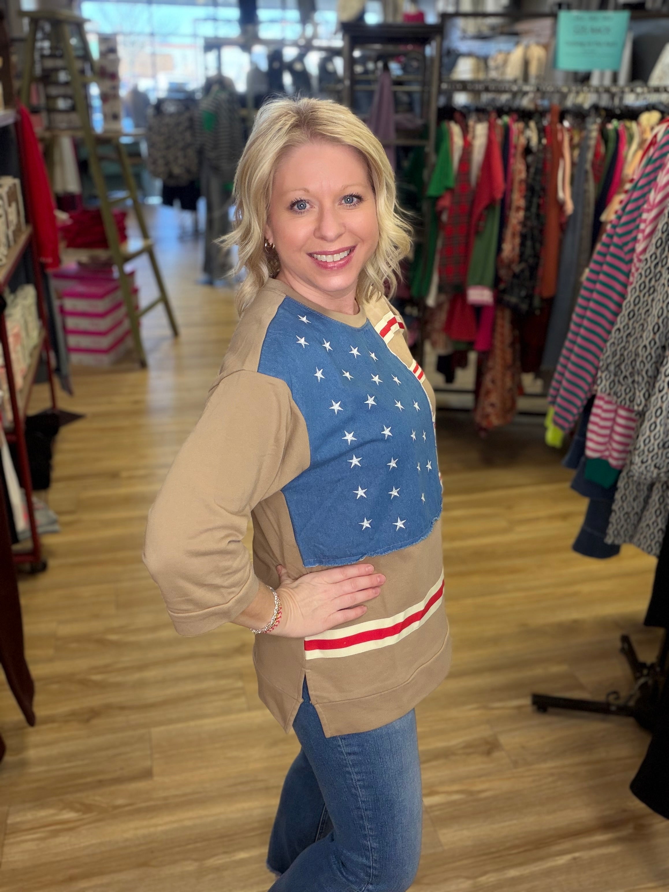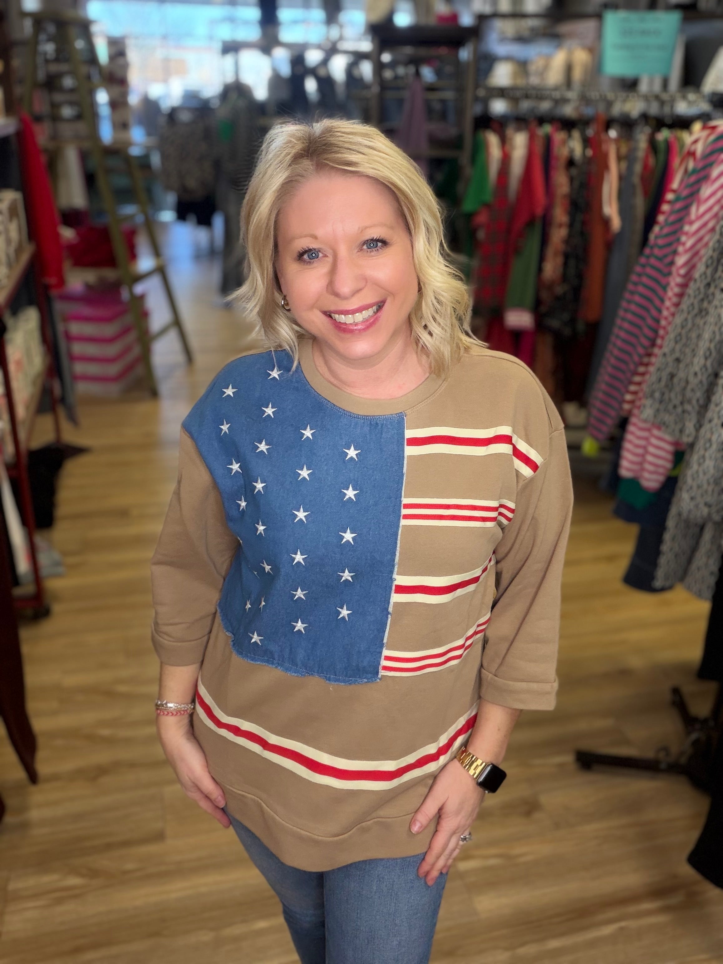 American Flag Patchwork Top