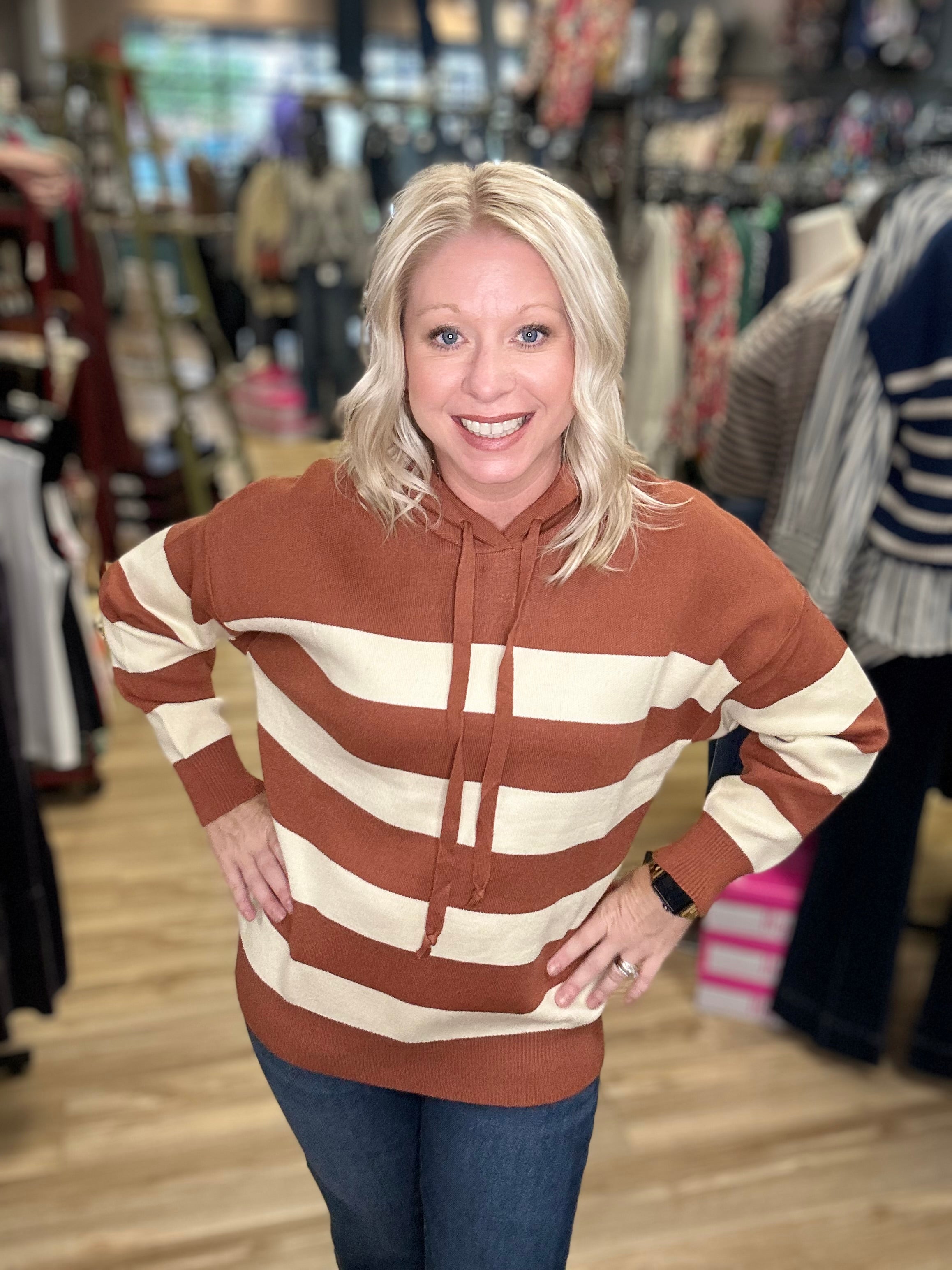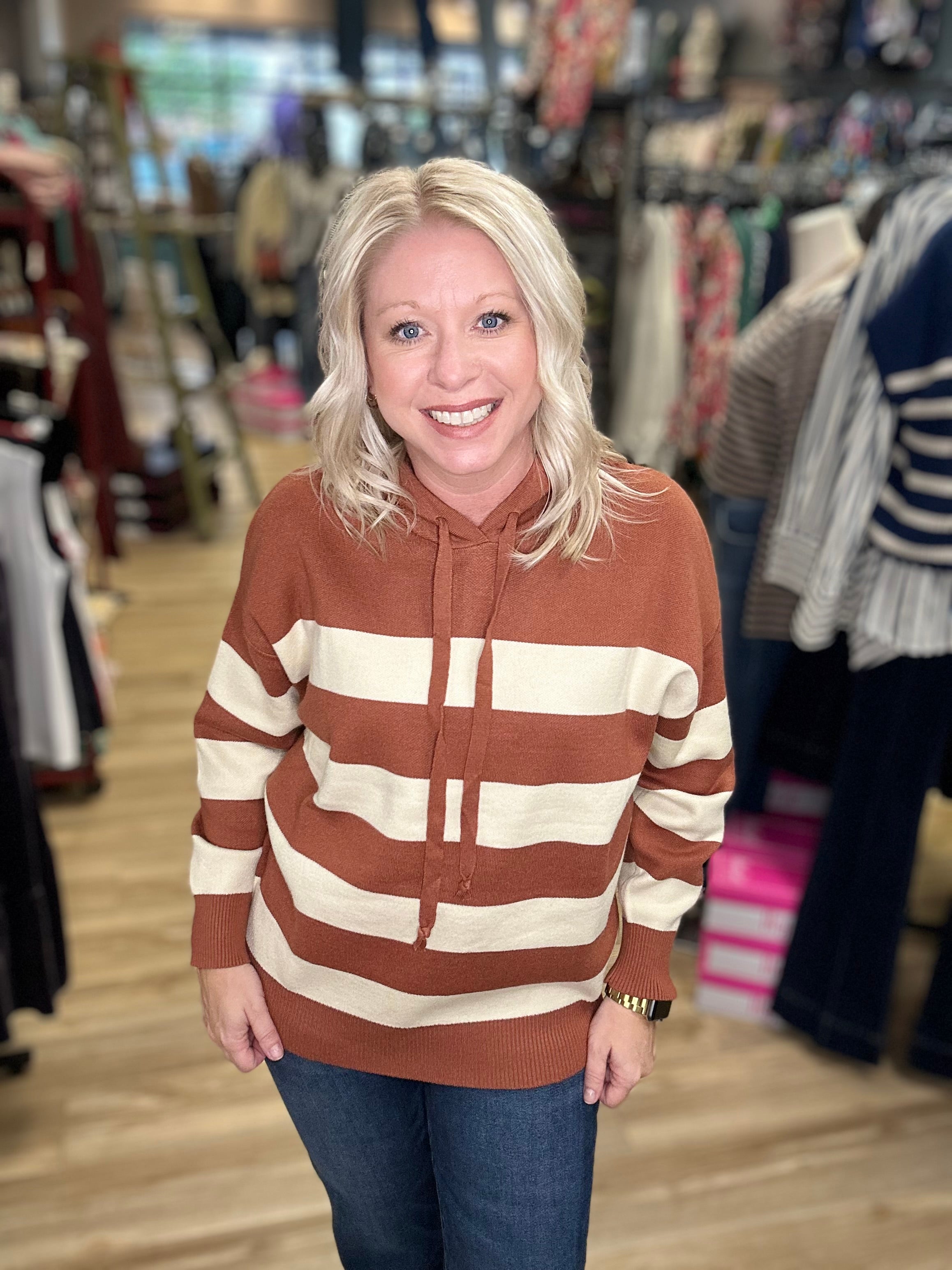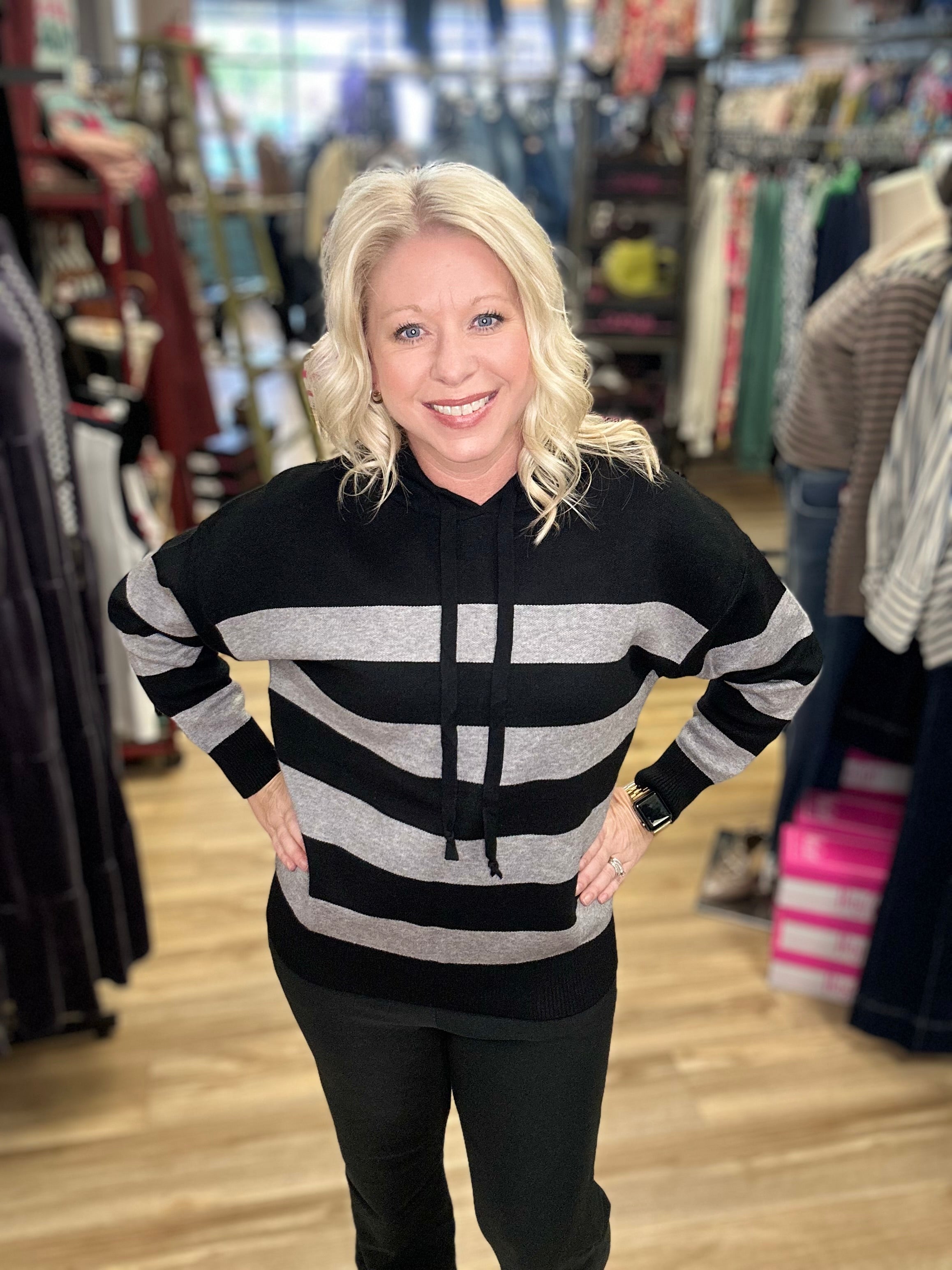 This one is SOOOO Soft!!!  Hooded pullover sweater with stripes.