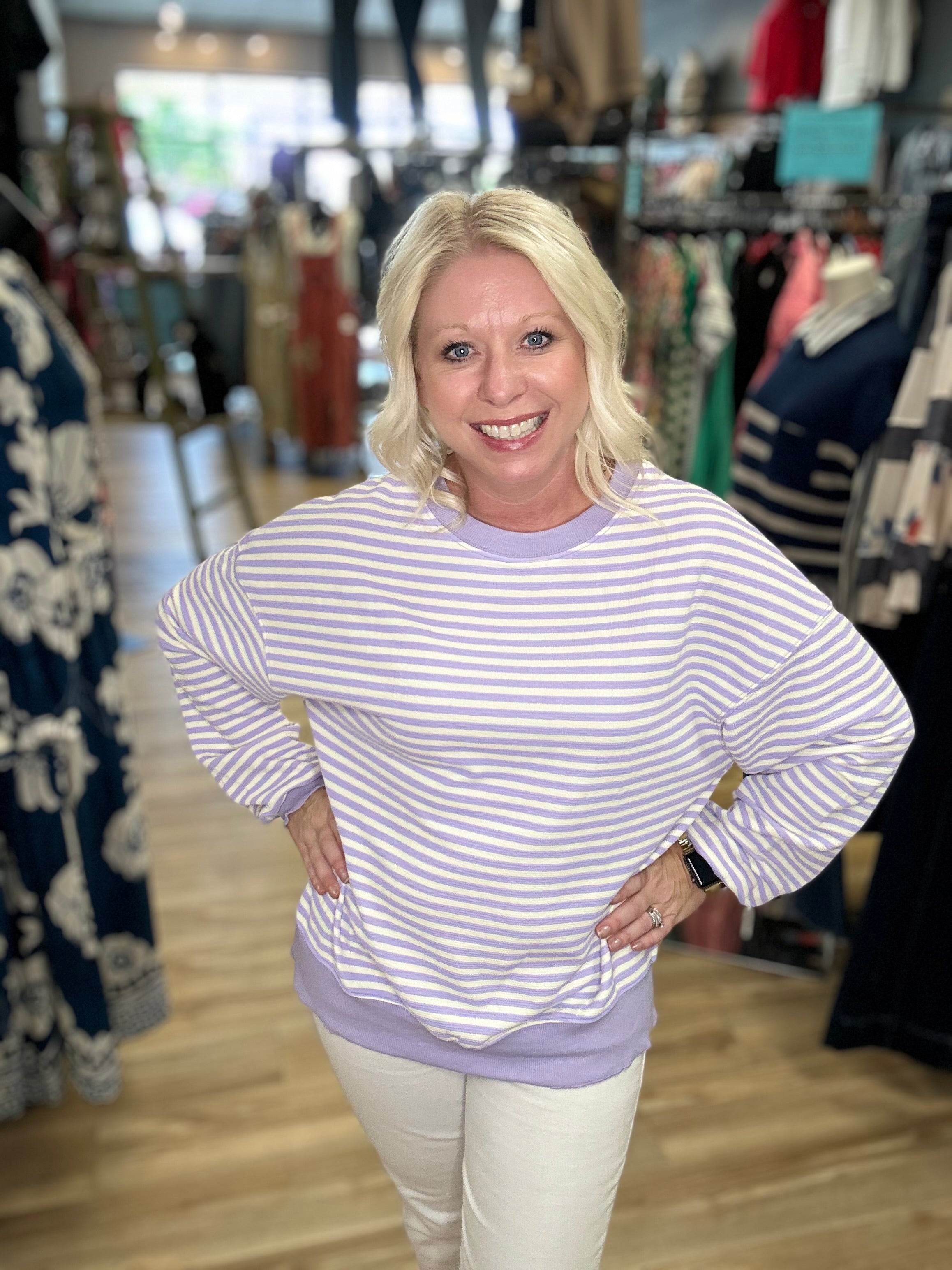 Stripe LS Drop Shoulder Top