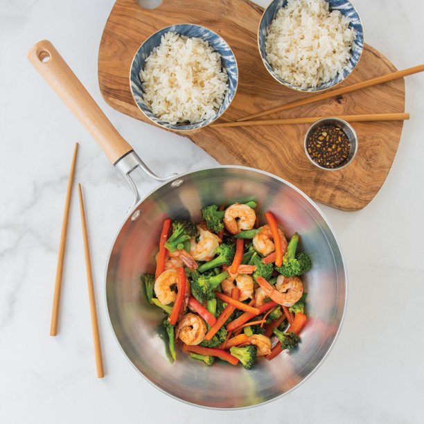 Healthy lifestyles begin with healthy food prep. Our Naturals® Wok is ideal for stir-fries, sauces, soups and more! The 10” size is just right for 1-3 person meals, and sloped sides contain food when cooking. New Naturals® Aluminum Cookware is durable by nature and recyclable by design! Inspired by our Naturals® Bakeware, this collection is made of pure aluminum for superior heat conductivity and even browning every time you cook. It is free of coatings and harmful chemicals and contains no PFOA/PTFE/PFAS. The beechwood handles remain cool to the touch when in use and adds a rich timeless look. Made from natural materials, these pans provide a lifetime of use when treated with care- and they are recyclable when they reach the end of their useful life. Can be used on electric, gas and ceramic stovetops.