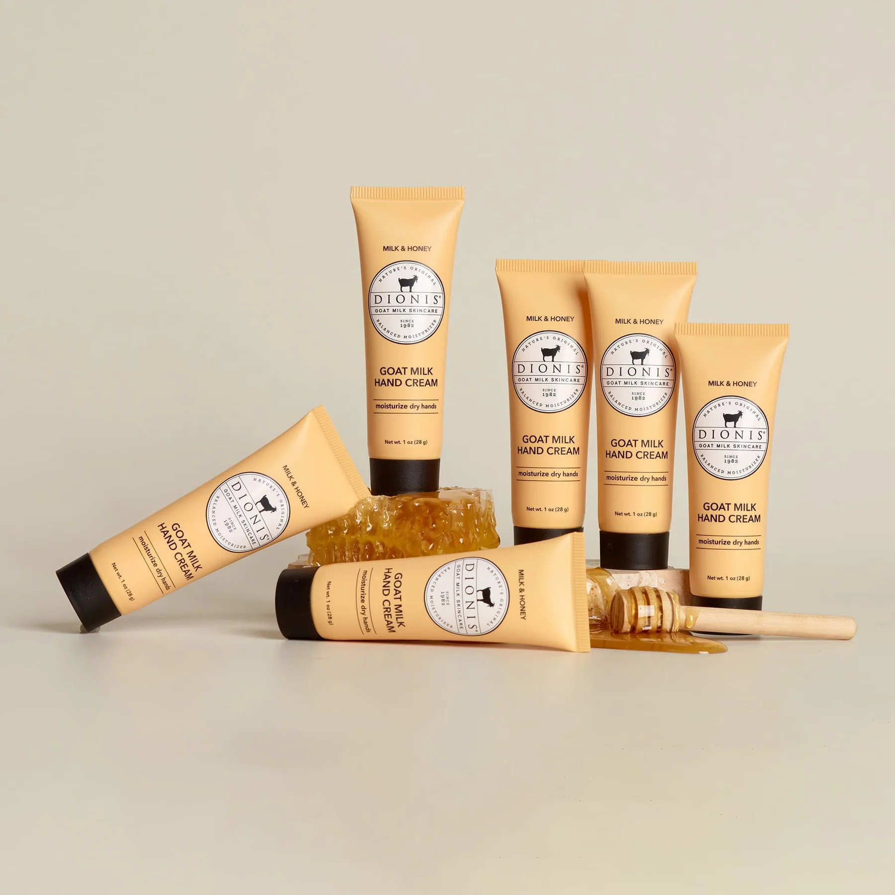 Want to know what all the hype is about?  Experience the transformation of your dry skin with this best-selling goat milk hand cream! Our unique formula is rich & creamy with a luxuriously fresh fragrance of rich, milky goodness and sweet honey straight from the comb to hydrate dry skin without leaving a greasy residue. We make this luxurious formula with nourishing goat milk, which is great for sensitive skin.  Join the herd and experience the wonders of goat milk.