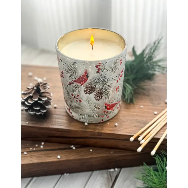 10oz Mercury Glass Cardinal & Holly Harmony Candle