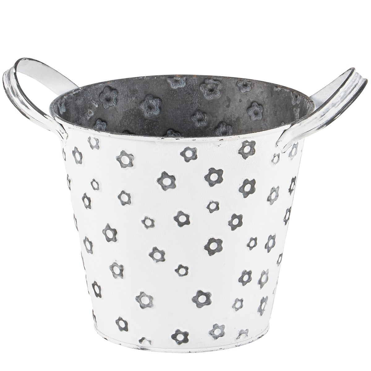 Galvanized White Metal Bucket w/Daisies, 8.25"