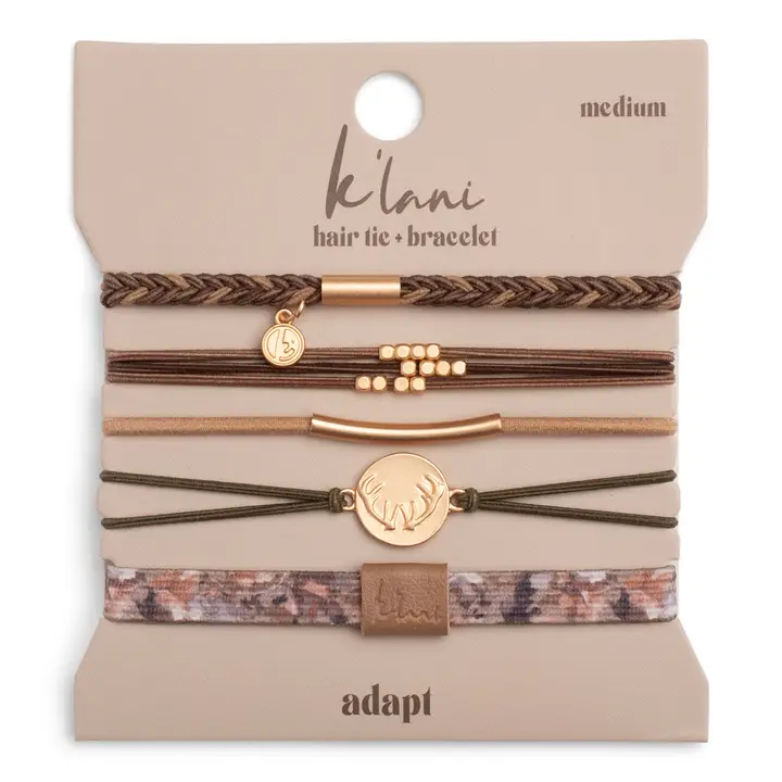 "Adapt" Camo, Gold Charm Antler Hair Tie Bracelet Set
