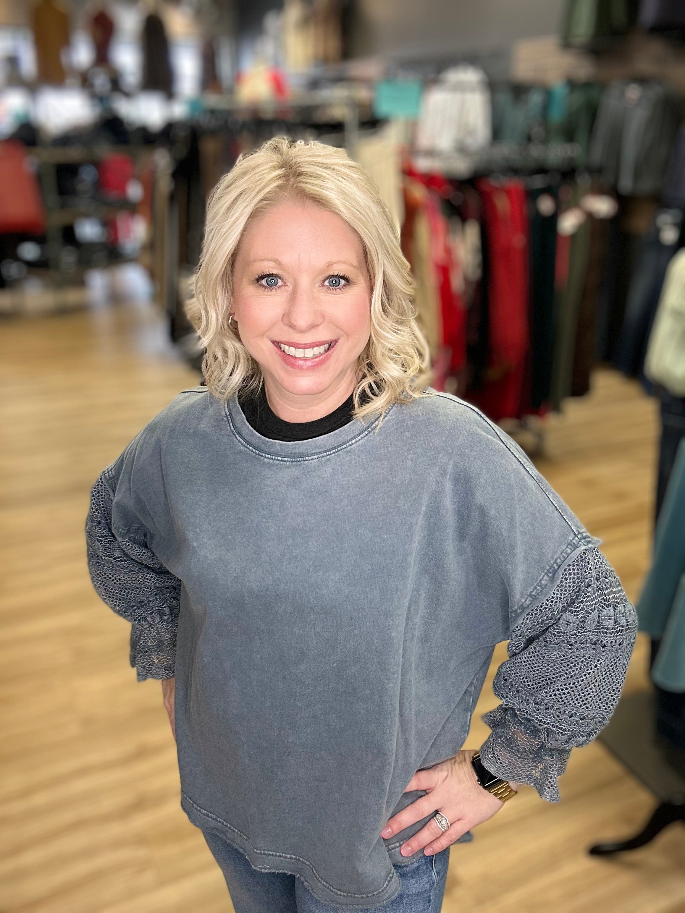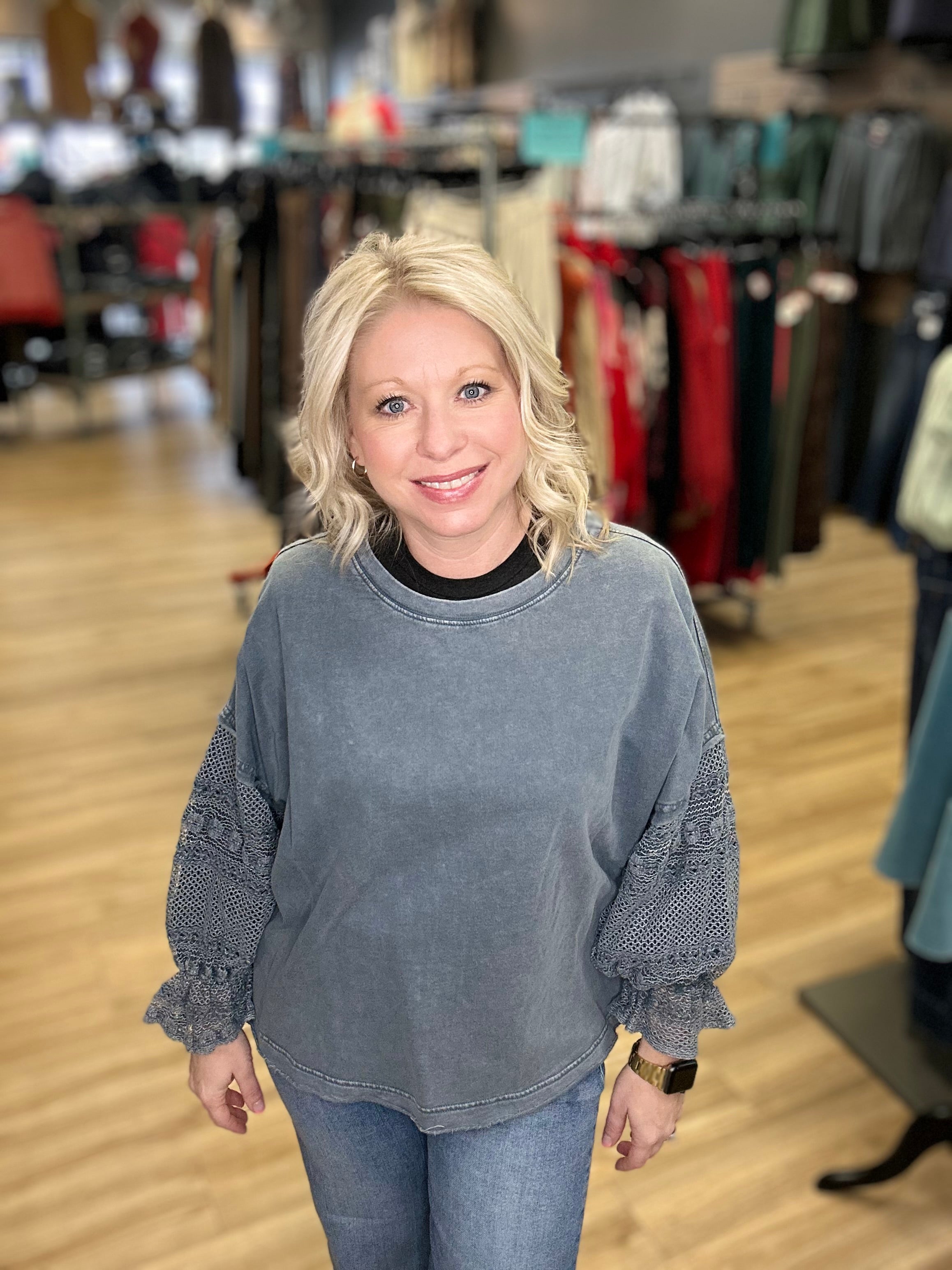 Sweatshirt w/Bubble Lace Sleeves