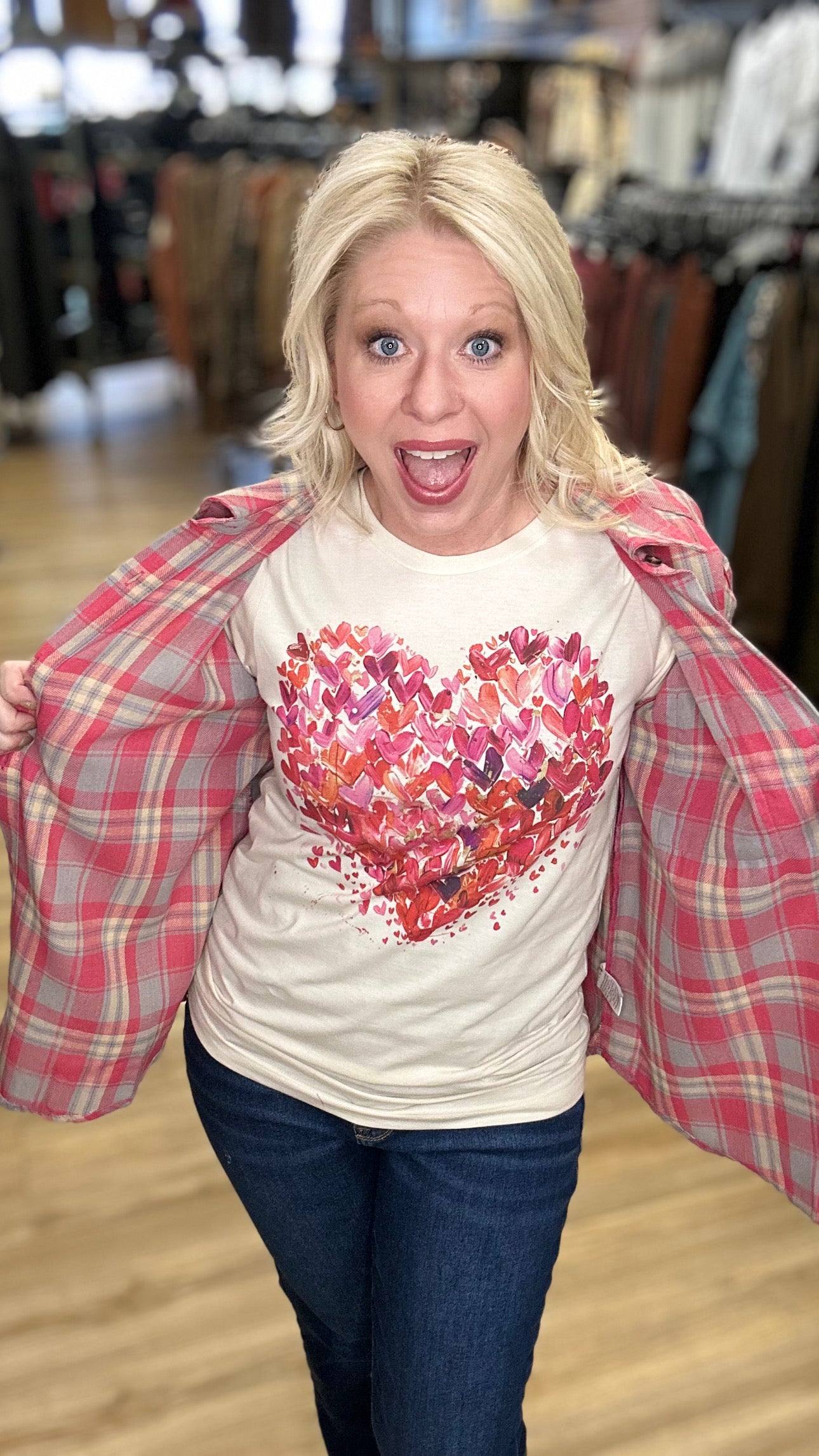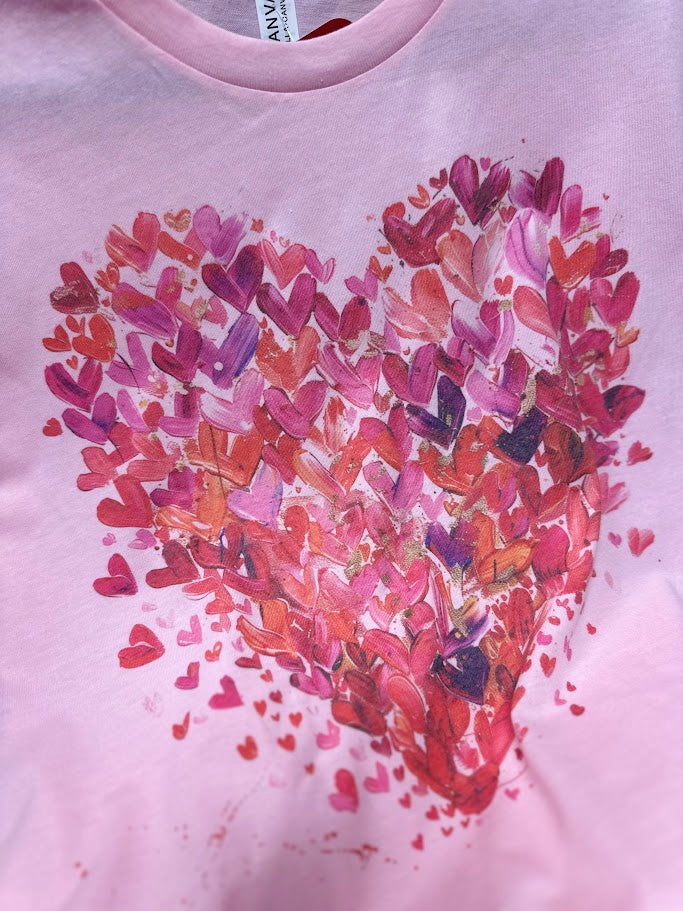 PaintBrush Heart T-Shirt. Cream or Light Pink tee with tiny hearts making up the big heart.